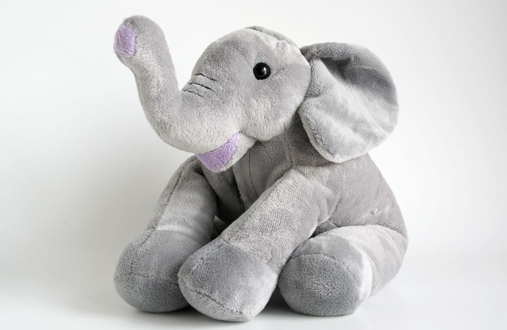 Whenever you need a little pampering, cuddle up to this sweet baby elephant. So soft and cuddly, you can even microwave it for a minute for a warm, fragrant hug. A removable insert is filled with lavender to soothe, and flaxseed to hold the heat. A great gift for young and old.  Made in USA.