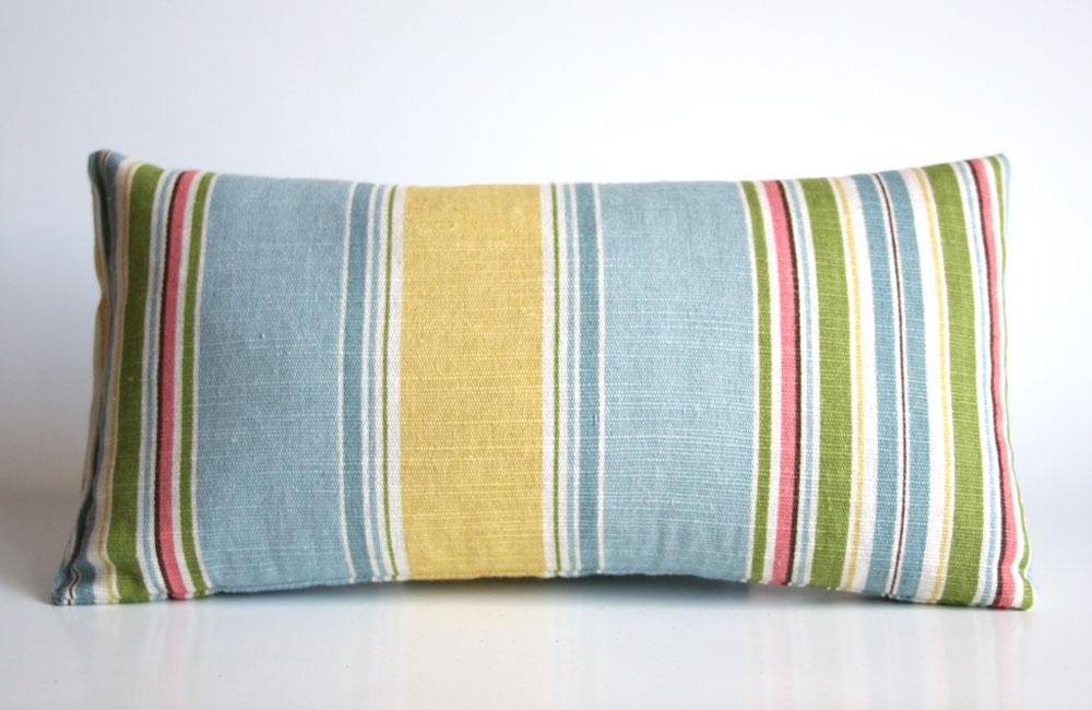 This fragrant handmade pillow is filled with about half a pound of the finest French lavender. The lively stripe makes a perfect accent for a bed, guest bed, or couch. Give it a squeeze now and then to release more of the scent. Breathe deeply and enjoy!